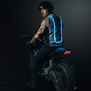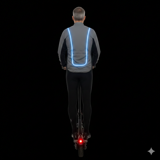 Dependiendo de la talla lleva de uno a dos metros de luz ultraligera electroluminiscente, cosida en una sola pieza en forma de “U”, iniciando del costado derecho hacia la espalda y regresando al frente izquierdo. Diseñada y colocada especialmente para ser visto desde cualquier ángulo.