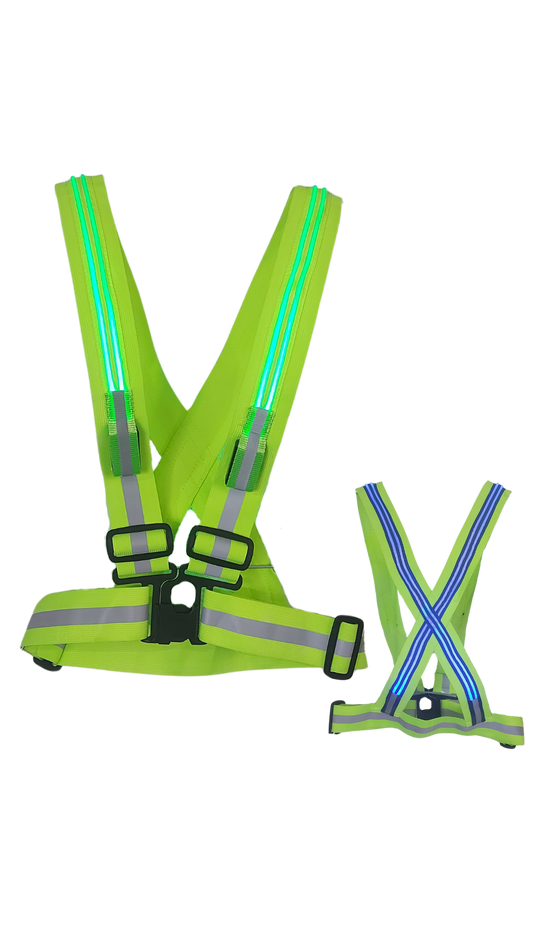 Dependiendo de la talla lleva de uno a dos metros de luz ultraligera electroluminiscente, cosida en una sola pieza en forma de “U”, iniciando del costado derecho hacia la espalda y regresando al frente izquierdo. Diseñada y colocada especialmente para ser visto desde cualquier ángulo.